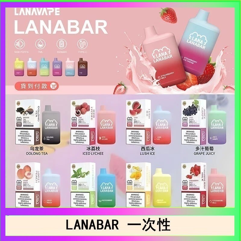 【一次性/拋棄式】LANABAR 5000 PUFF一次性5000口(3.0%) 13ml容量 可充電Type-C型